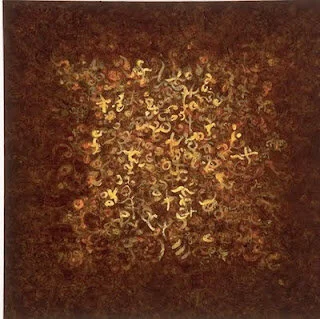 The marks on the canvas are not in themselves consonants. You can't see a p or a k or a w, but you see what consonants feel like to me. The marks are also elements of the written consonants without being the consonants themselves. So the painting grew from an intuitive sense, from a feeling inside me. Artists are credited with mysterious talents, often envied by museum and gallery visitors, but mostly the talent artists have is an expanded sensory awareness and the courage to value and follow that awareness into action.